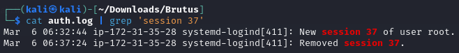 Task 7. What time did the attacker's first SSH session end according to auth.log?