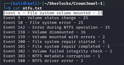 NTFS.evtx, so we will check ourntfs.txt.