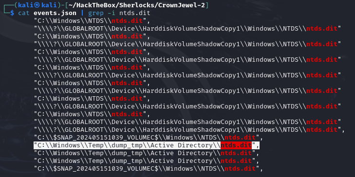 cat events.json | grep -i ntds.dit