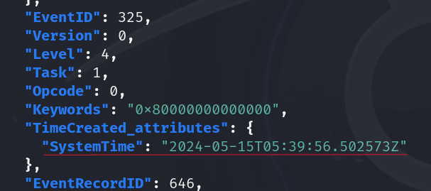 cat events.json | jq '.[].Event | select(.System.EventID == 5379) | select(.System.TimeCreated_attributes.SystemTime | test("2024-05-15T05:36:31"))' - It returns 3 events with logon ID