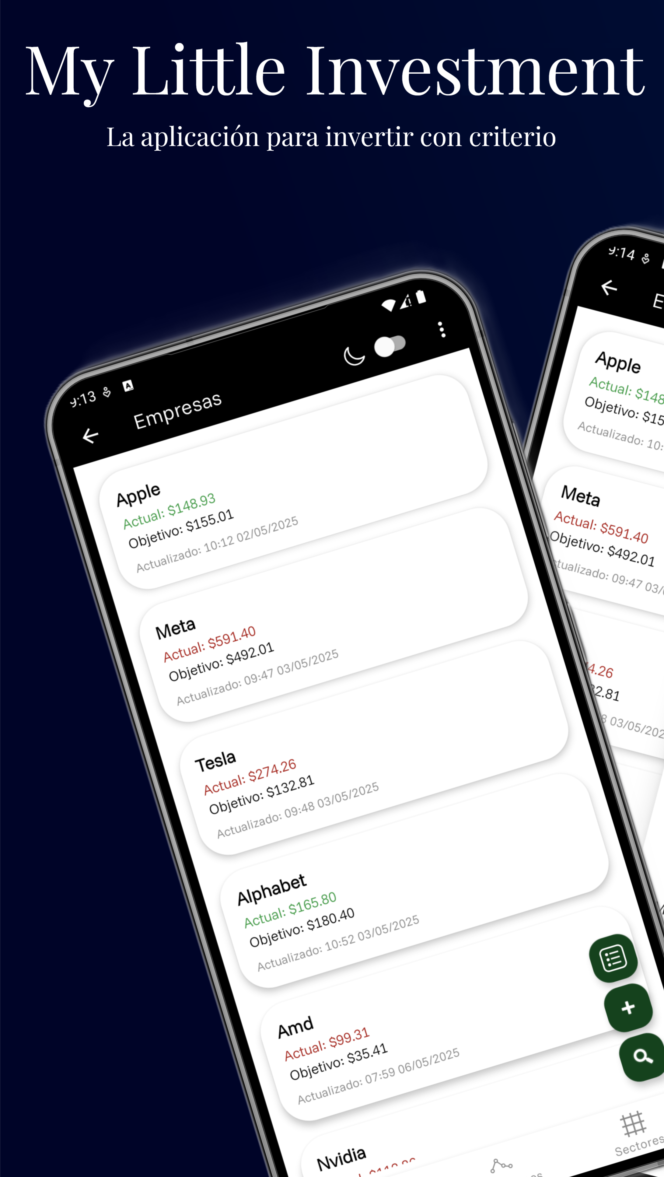 My Little Investment es una aplicación Android minimalista e intuitiva, que aporta claridad al análisis de empresas, identificando si una acción está sobrevalorada o infravalorada. Su objetivo es ayudar a tomar decisiones informadas a la hora de invertir.