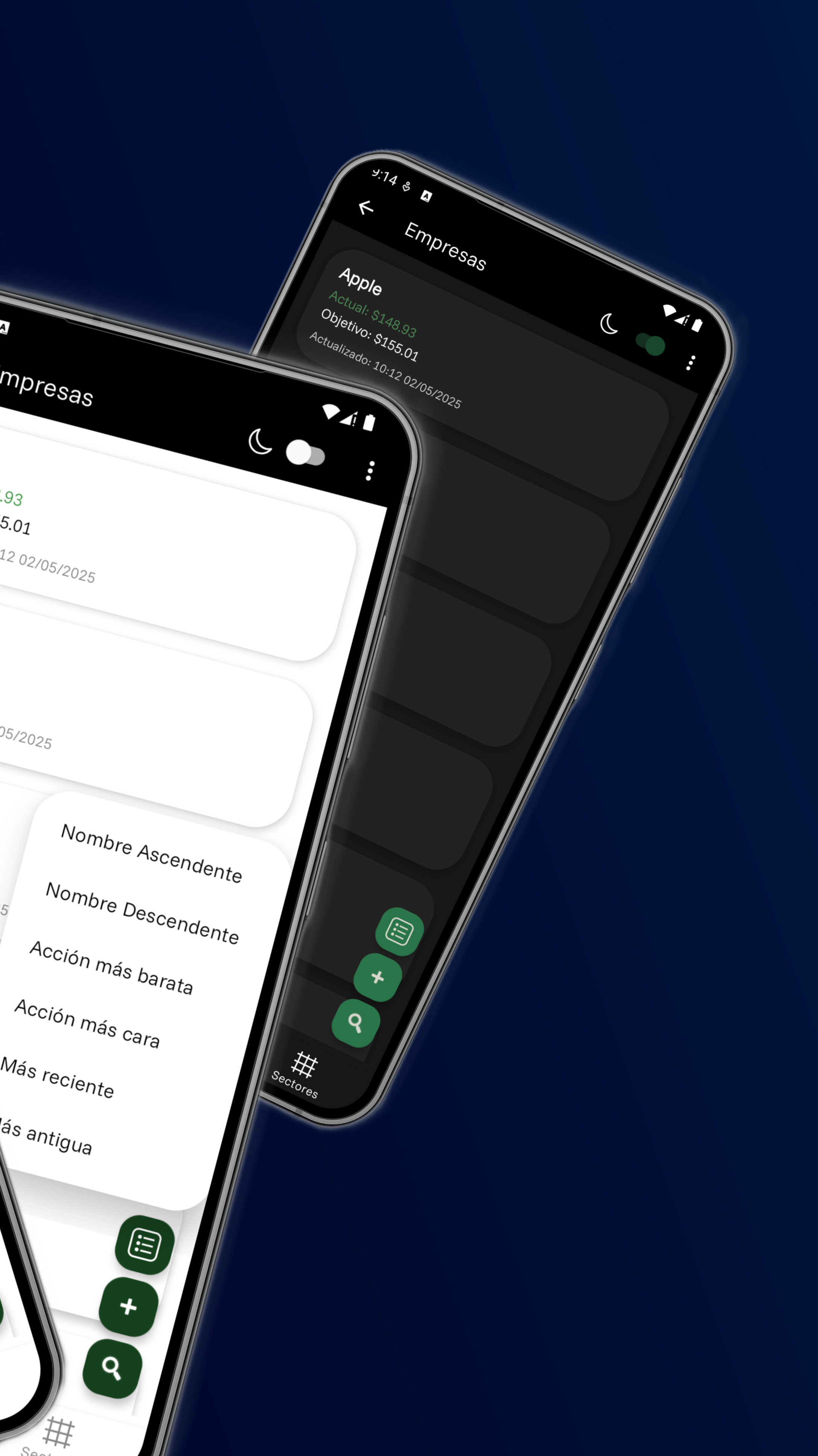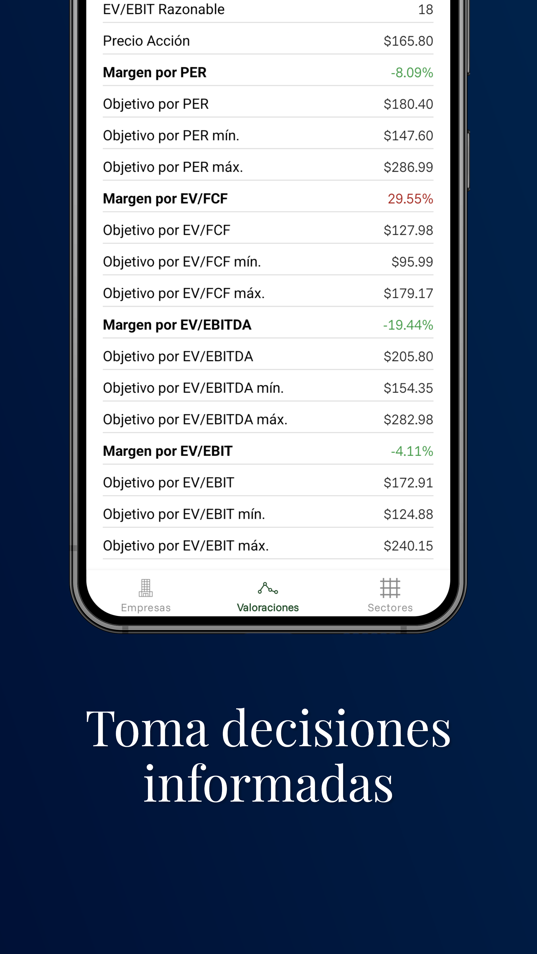 - Cálculo automático de precios objetivo y márgenes de cada valor.